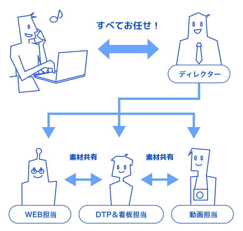 いただいた指示やご希望をすべてのクリエイティブに反映するので楽々&スムーズ!